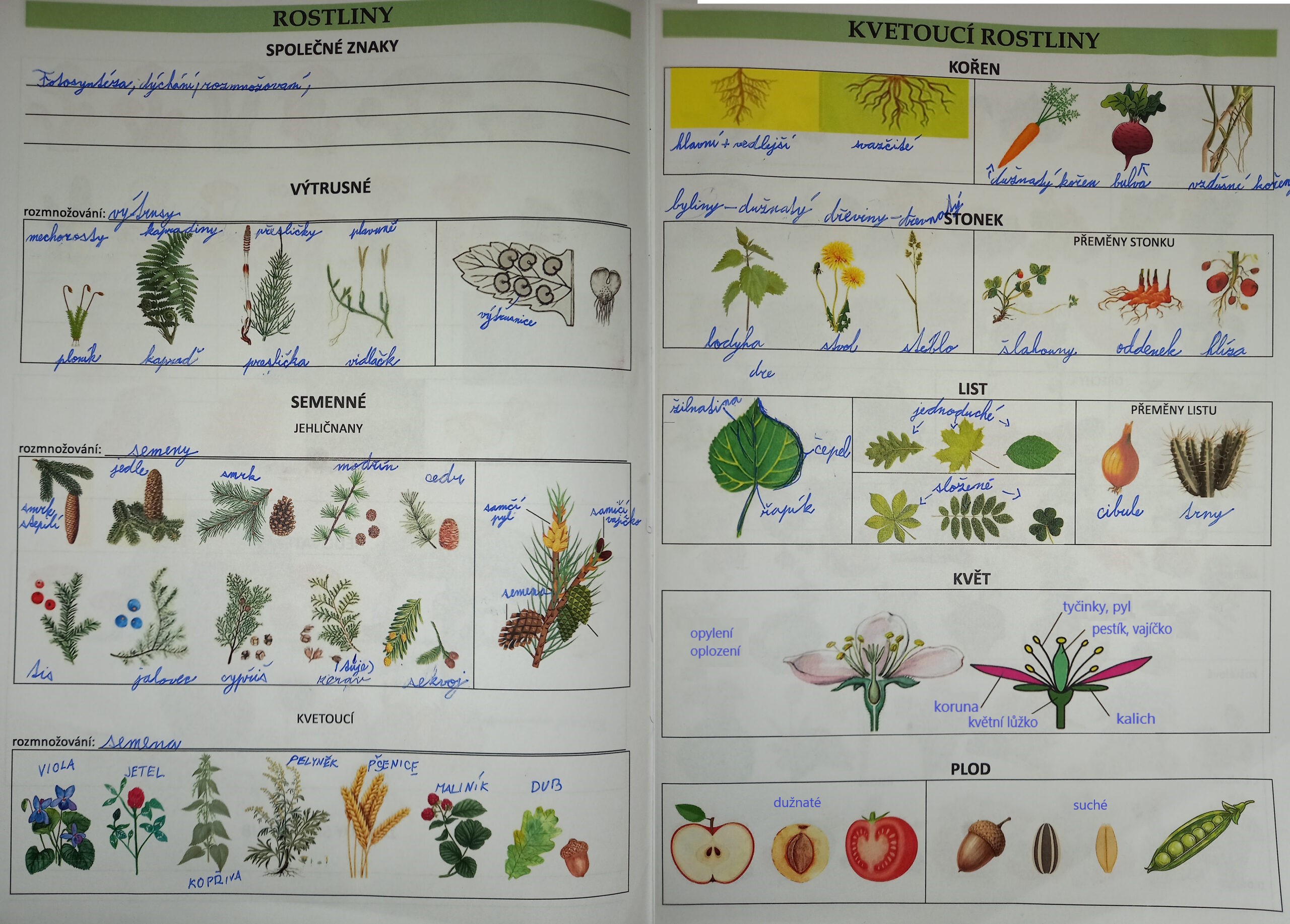 Přírodověda: Přírodovědný zápisník – květ, plod (viz příloha). Opakování, videa.