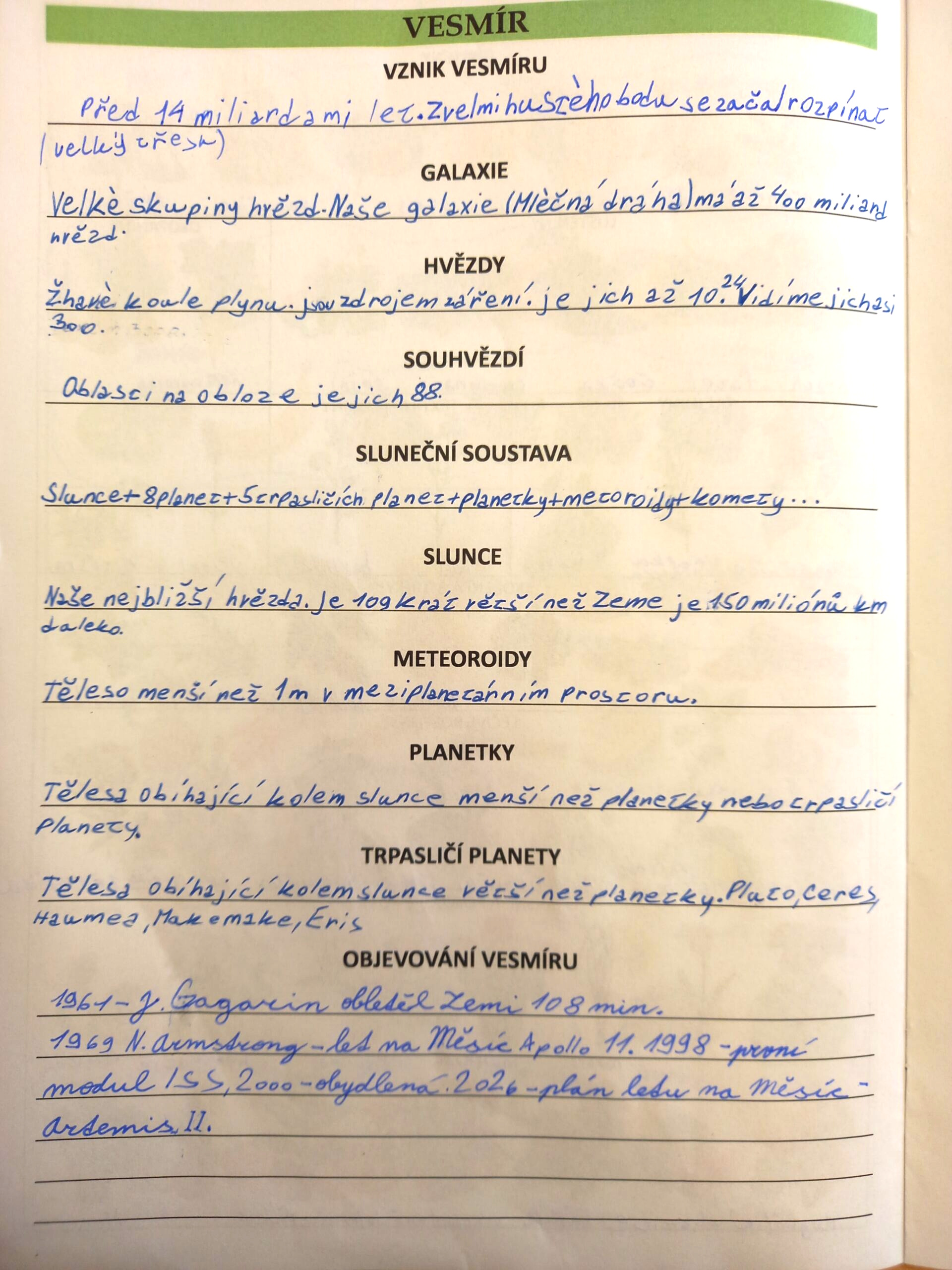 Přírodověda: Zápis do Přírodovědného zápisníku (viz příloha). Video – Apollo 11 (https://www.youtube.com/watch?v=-oaJmgm8hs4&t=3s).