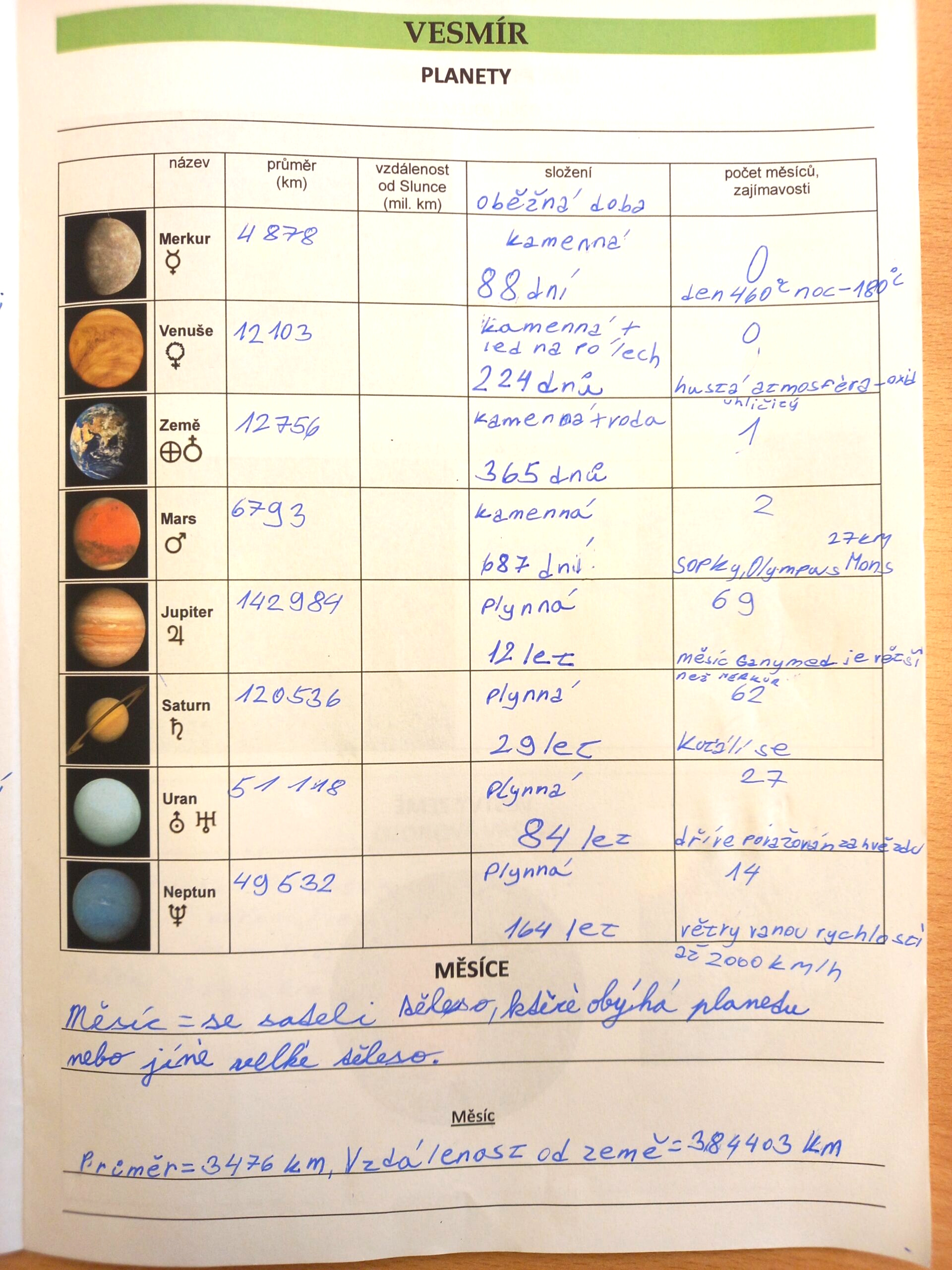 Středa 1. 4.: Test – přírodověda – vesmír. Test podle Přírodovědného zápisníku (dvoustrana Vesmír) – děti ho budou mít během testu k dispozici, budou tam dohledávat informace. Nemusí se tedy na test přímo učit, ale měly by mít vše dopsáno a umět informace vyhledat.