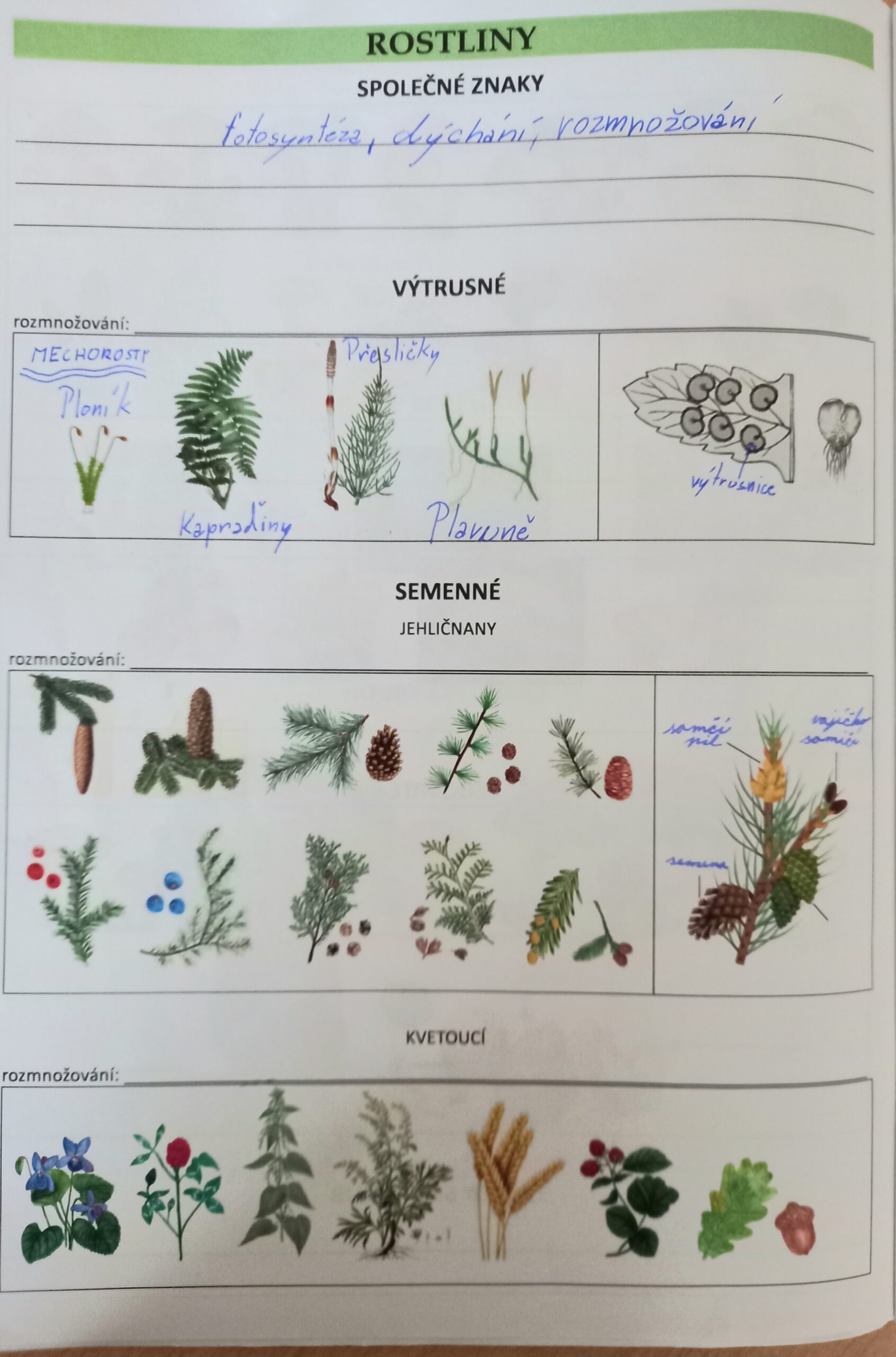Přírodověda: Práce s mikroskopem. Přírodovědný zápisník – rostliny – společné znaky, výtrusné rosliny (viz příloha).