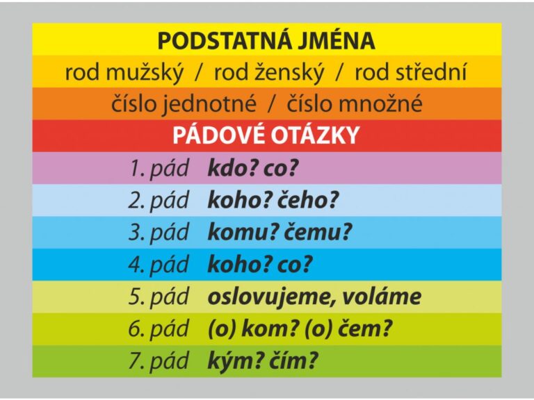 Český jazyk – učivo: slovní druhy, podstatná jména – konkrétní a abstraktní, pády podstatných jmen …