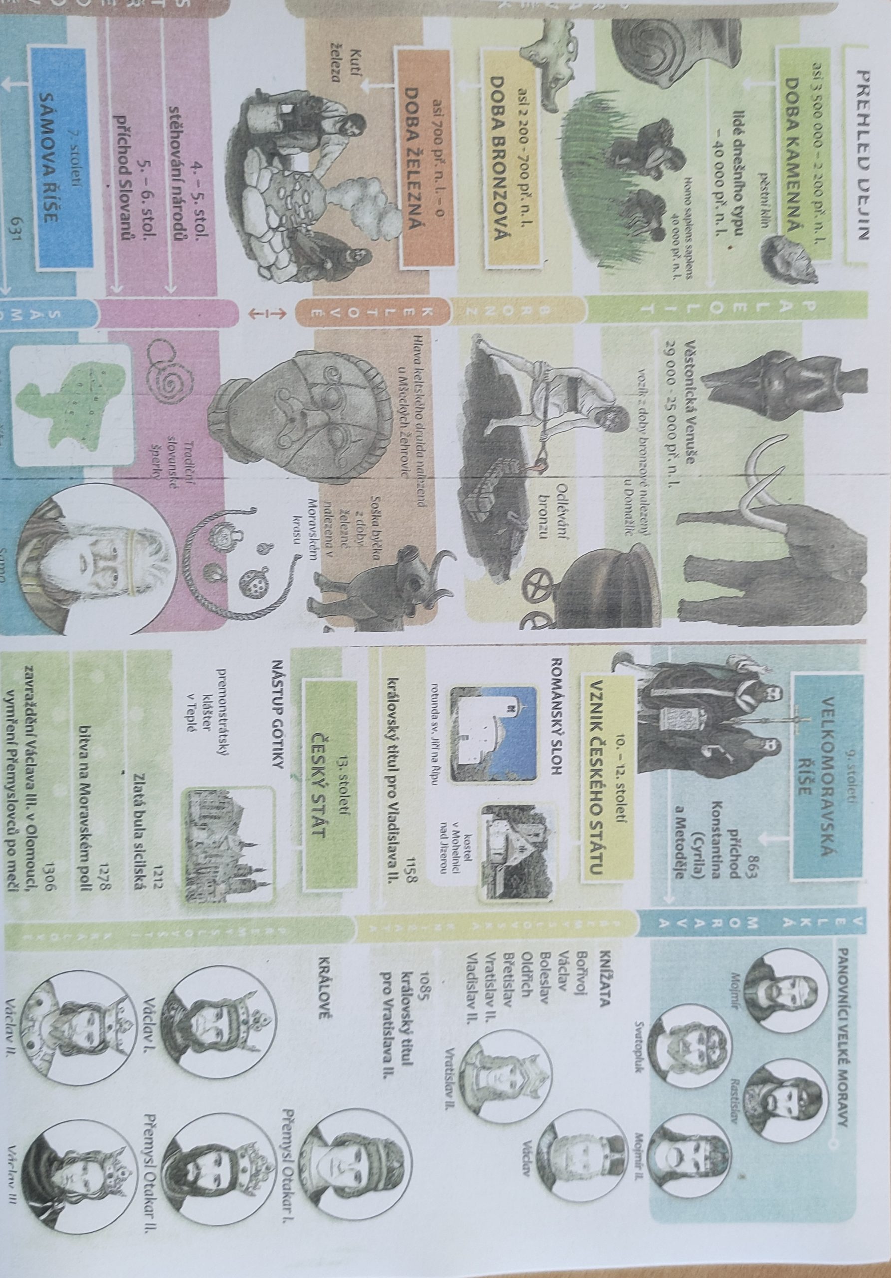Také jsme si zopakovali, co už známe z minulé hodiny – Kelty, Slovany a Velkou Moravu. A dnes jsme k nim přidali další důležité vládce z rodu Přemyslovců: