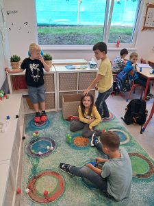 je tu druhá půlka týdne. Ve škole už jsme skoro „jako doma“. Daří se nám hezky propojovat učivo jednotlivých předmětů.
