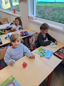 Jelikož bude vyjímečně etika s Álou už ve čtvrtek, v pátek si dáme matematiku – učebnice jsme si raději ve čtvrtek nechali ve škole. Budeme stavět krychlové stavby, zapisovat počet objektů pomocí puntíků a kreslit podle diktátu.