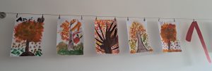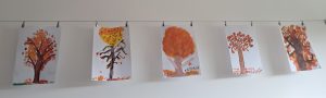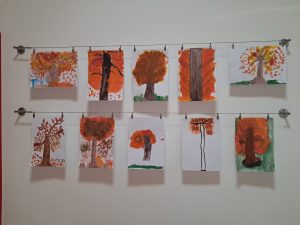 Ve škole můžete nakouknout na výstavku podzimních stromů v podání prvňáčků:
