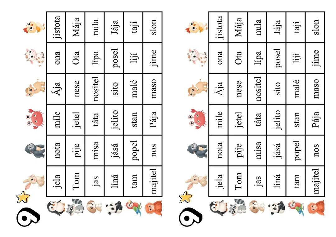 dnes si napíšeme diktát tiskacích písmen, slabik a slov. Budeme číst z našich oblíbených karet (viz příloha), kde kromě čtení procvičíme i orientaci v tabulce, sledování textu, práci se souřadnicemi. V Písance budeme na str. 32 psát slabiky.