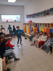 v úterý si ještě pohrajeme s novým písmenem D, abychom si ho znovu zažili všemi smysly. Čím je písmen více, tím více slov můžeme číst, ale také se mohou více plést. Zkusíme tomu předejít :-). Budeme modelovat, zahrajeme si hru „probudí mě D na začátku slova“, zapíšeme co nejvíce slov, která si pamatujeme z domácího úkolu – čtení slov (kdo zvládne alespoň 3 slova správně zapsat, odnese si jedničku). Zapojíme i pohyb – „D“ na začátku slova = výskok, uvnitř slova = sednu si, slovo bez „D“ = stojím na jedé noze. Ve Slabikáři budeme číst a hledat stejné slabiky – str. 33/2, 3.