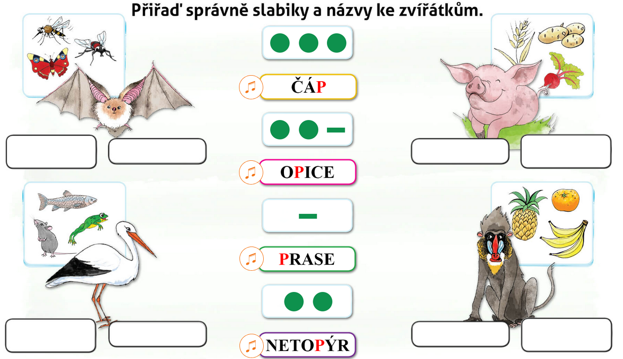 Zopakujeme si i délku slabik a budeme hledat slova dle umístění hlásky „P“.